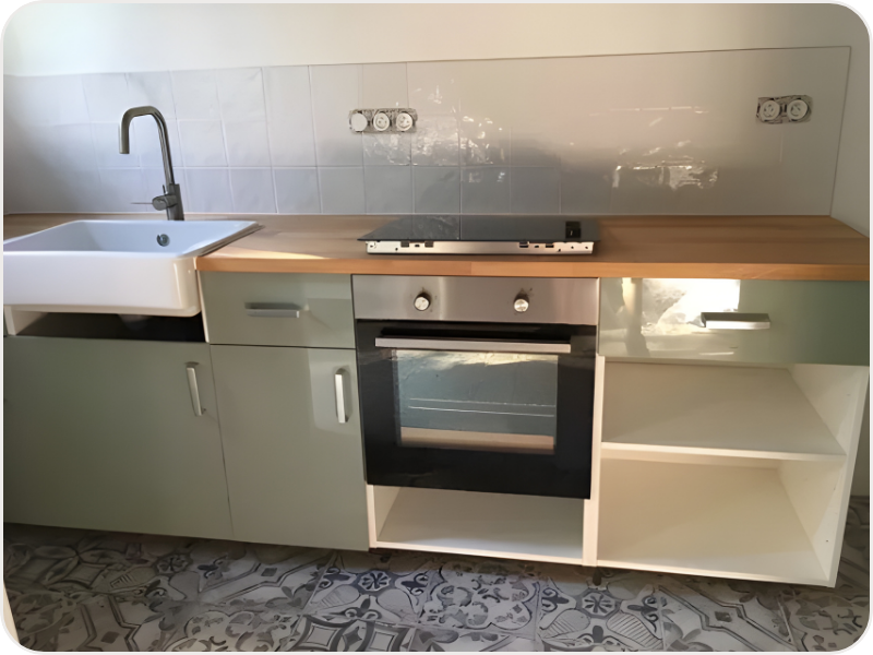 J’interviens également pour l’aménagement de cuisines, notamment pour la pose de revêtements, l’agencement et les finitions, afin de vous proposer des solutions cohérentes et adaptées à l’ensemble de votre intérieur.
